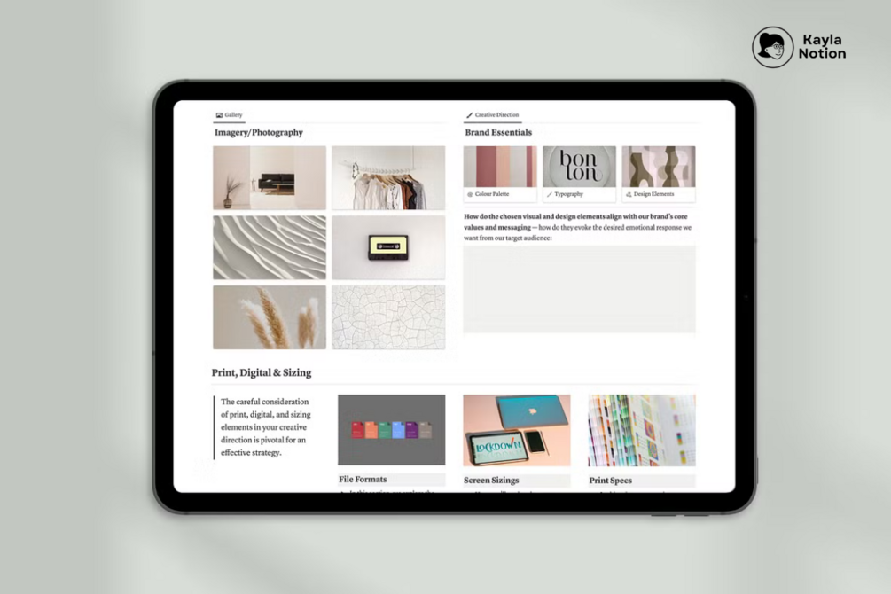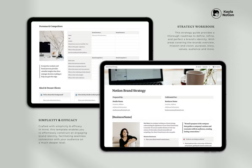 Buy this and instantly access a comprehensive Notion Branding Kit, packed with templates and tools to elevate your brand. Streamline your branding process from identity to strategy, all in one organized Notion workspace. Your journey to brand design excellence starts here.