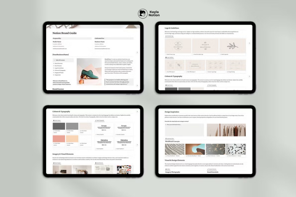 Discover our comprehensive toolkit designed for crafting impactful brand identities with ease, directly within Notion. Tailored for entrepreneurs, creatives, and businesses of all sizes, it streamlines the branding process by offering customizable logo templates, color palette selections, and brand messaging guidelines. Ideal for simplifying your branding journey, our kit ensures accessibility without complexity. Embrace the power of cohesive branding and make your mark in the digital landscape with our All-In-One Notion Branding Kit.
